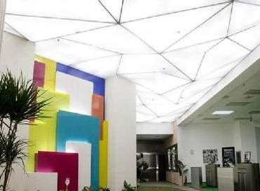 造型薄膜是用PVC制成的高科技透光材料,最大的優(yōu)點是能均質(zhì)散光,并且,當(dāng)薄膜和燈管距離高于 20~30 公分時,就能完全隱藏?zé)艄茏尮饩€均勻發(fā)散。而且,造型薄膜延展性極佳,依照設(shè)計的外框架能變換不同的立體造型,還能印制各種圖案,最適宜應(yīng)用在客廳等家庭裝修裝飾、別墅裝修裝飾等家裝的大空間中。造型薄膜天花板現(xiàn)已在高科技、化妝品、餐廳,營造科技、前衛(wèi)的空間里大放光彩。