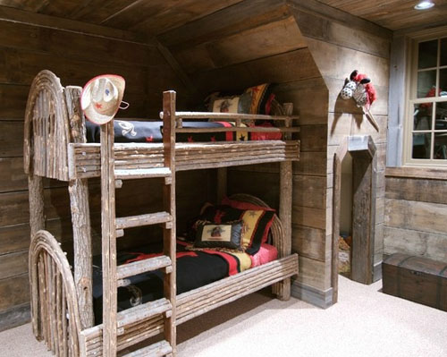 再來看看這款色設(shè)計,根據(jù)這間房屋的裝修風(fēng)格,上下鋪的也選擇了木質(zhì)床,原汁原味的木頭作為原材料,沒有過多的加工,讓木頭的自然紋理清晰可見,透著十足的質(zhì)感,與居室內(nèi)其他物件及主題風(fēng)格貼合的十分緊密。床品的選擇也很適合。走進(jìn)這樣一間,仿佛進(jìn)入了樹屋中一樣,一切都是那么的純樸自然,別有一番滋味。