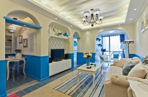 對于地中海這樣的沿岸地區(qū),裝修風(fēng)格中的主要色系就是白色和藍色,搭配上造型別致的拱形設(shè)計物件和石礫貝類等素材的任意組合,即可營造出別具特色的地中海風(fēng)情。在打造地中海風(fēng)格的家居時,配色至關(guān)重要,要突出純粹的天然并可以給人一種陽光灑下,清新自然的感覺。當(dāng)然,來自于大自然最純樸的色彩元素不僅僅只有藍白兩色,與黃色,土黃色,綠色,藍紫色以及紅褐色交織在一起的色彩,才能創(chuàng)造出地中海獨有的藝術(shù)風(fēng)格。
