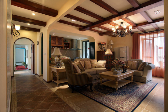 東南亞風(fēng)格的客廳,主要要給人以高貴優(yōu)雅且有氣魄。門的設(shè)計多半為半透明的推拉式木門,使得室內(nèi)的空氣流通效果相當(dāng)之好?蛷d內(nèi)的設(shè)計無論是家具的選擇還是造型的設(shè)計選材都很貼近自然,用純粹的材料打造出來的豪華感,古樸中夾雜著創(chuàng)新與獨特,給人一種新鮮感。