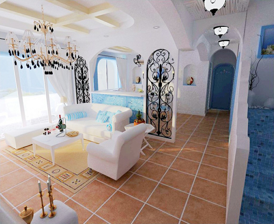 地中海風(fēng)格的家庭設(shè)計(jì)中,家具多是采用色彩簡(jiǎn)單,線條簡(jiǎn)潔,邊幅渾圓的木質(zhì)家具,盡顯自然。地面多以赤陶或石板為主,更具古樸風(fēng)情。對(duì)于地中海風(fēng)格家居特點(diǎn),裝飾元素多采用小石子、陶瓷類、瓷磚、貝類及玻璃制品等,切割后可隨意組合。簡(jiǎn)潔素雅的小花格子圖案是地中海主要的風(fēng)格,造型獨(dú)特的鐵藝裝飾品及家具也是地中海這個(gè)沿海地段所特有的產(chǎn)物,而且,爬藤類植物在地中海家居設(shè)計(jì)中是極其常見(jiàn)的,走進(jìn)地中海風(fēng)格的家具中,隨處可見(jiàn)一盆盆可愛(ài)的綠色盆栽擺放其中,藤蔓類植物以其本身的攀爬特點(diǎn),潛移默化中造就了居室內(nèi)別具一格的裝修風(fēng)格。這種獨(dú)特的裝修方式是地中海區(qū)域外家居設(shè)計(jì)中所不具有的。
