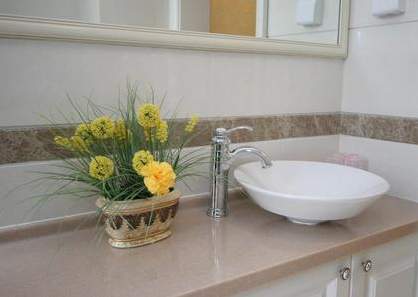 在這種青春而前衛(wèi)性的衛(wèi)浴間裝修裝飾中,不僅色彩艷麗多姿、浴具花樣翻新、小飾品點(diǎn)綴怡心,而且還配合衛(wèi)浴間的色彩風(fēng)格將盆栽也設(shè)計其中,但是,衛(wèi)浴間因其潮濕、光線微弱、溫度較高,而且還會不時有沐浴時的泡沫四溢飛濺,這使適應(yīng)衛(wèi)浴間條件的盆栽種類和數(shù)量銳減(這也許是一直以來,盆栽在衛(wèi)浴間缺席的原因吧),盡管這樣,現(xiàn)代社會的發(fā)展朝氣、時尚年輕人的愛美潮流,終于將盆栽搬入了衛(wèi)浴間,在種種講究和不斷的考究中,一些適應(yīng)性極強(qiáng)而蔥蘢、靈動的綠色植物在衛(wèi)浴間安了家,艷麗的花朵在單調(diào)的洗浴用品中綻放了,大大的玻璃墻內(nèi)透射著茂盛的綠色,墻角間、甚至浴簾的架子上都有了綠色的倩影:吊蘭倒掛在了衛(wèi)浴間的墻面上,梳妝臺閃爍著小花、小草的身影,虎尾蘭吮吸著浴室中的水蒸氣、常春藤凈化著浴室間的空氣、艾草和蘆薈吸收著浴室間的異味、平安樹(肉桂)吐露著清新的空氣、薄荷和蘆薈共肩殺滅細(xì)菌的巨任……