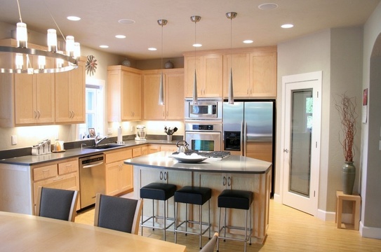 U型櫥柜的適用性,決定了廚房的寬大、方形等廚房結(jié)構(gòu),這種寬大的廚房,要保證兩排相對的物件中間,至少要有120cm的距離,這樣才能保證有足夠的空間供下廚操作。而島臺型櫥柜,是開放性廚房或?qū)掗煹拇髲N房最適宜擺放的,島臺型櫥柜有更多的操作臺面和儲物空間,可以供多人同時在廚房操作,如,飯店、食堂等公共性廚房、大家族居住在一起的大廚房等。島臺型櫥柜,還可根據(jù)需要進行擴容,比如增加烤箱、爐灶等,不過在增加計劃實施前,還要考慮到是否有利于抽油煙機管道、電路和通風管的連接,還得確保爐灶和水槽之間要有工作臺面。各工作臺面間,至少應留出120cm的距離,供下廚操作和柜門、抽屜的開啟等。