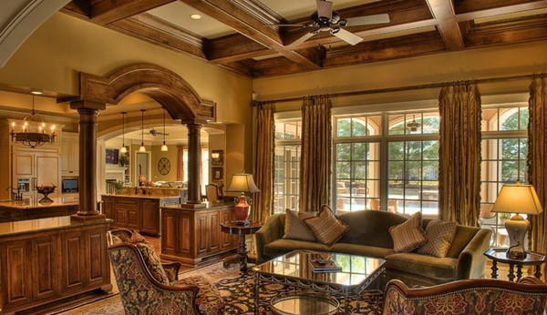 歐式古典風(fēng)格賓館酒店裝修裝飾等工裝,和別墅裝修裝飾等家裝中,彰顯大氣、貴氣目的必須的表現(xiàn),所以在材質(zhì)上,較多采用櫻桃木、胡桃木等高檔實木以及仿古地磚、歐式壁紙、大理石等,彰顯高貴、典雅的貴族氣質(zhì),并強調(diào)以華麗的裝飾、濃烈的色彩、精美的造型達到室內(nèi)裝修裝飾雍容華貴的裝飾效果,由此,歐式客廳裝修裝飾的頂部喜用大型燈池,并用華麗的枝形吊燈營造氣氛。